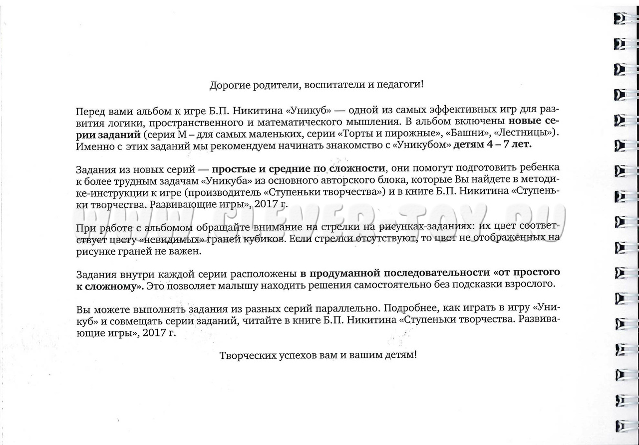 Альбом используется совместно с набором из 27 кубиков «Уникуб».