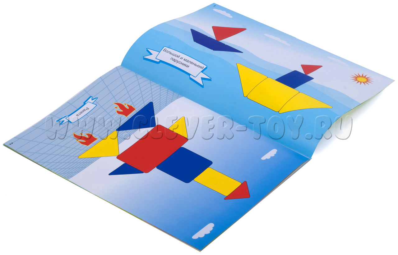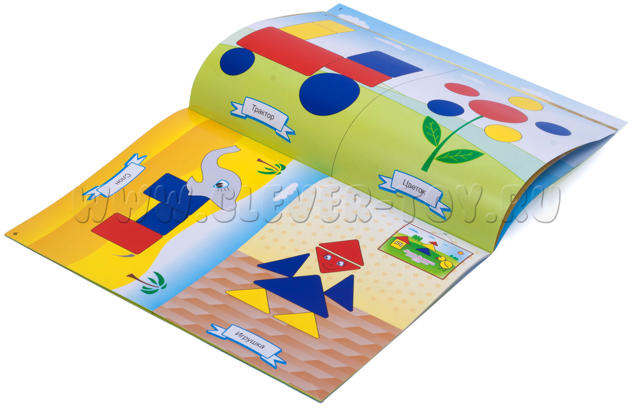 Накладывая цветные блоки на цветные изображения в альбоме, Ваш ребенок сможет неоднократно испытать всю радость развития, наблюдая как под его руками плоскостные изображения превращаются в объемные предметы. Благодаря блокам малыш запомнит цвета, формы, размер, и научится логически мыслить.