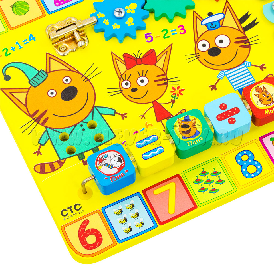 Красочный и позитивный бизиборд "Учим цифры" (лицензионный бренд "ТРИ КОТА"), созданный по методике Монтессори, обучает счету, знакомит с музыкальными звуками, цветами радуги; развивает навыки шнурования, мелкую моторику, воображение, логику и речь. Герои любимого мультфильма обязательно помогут в этом!