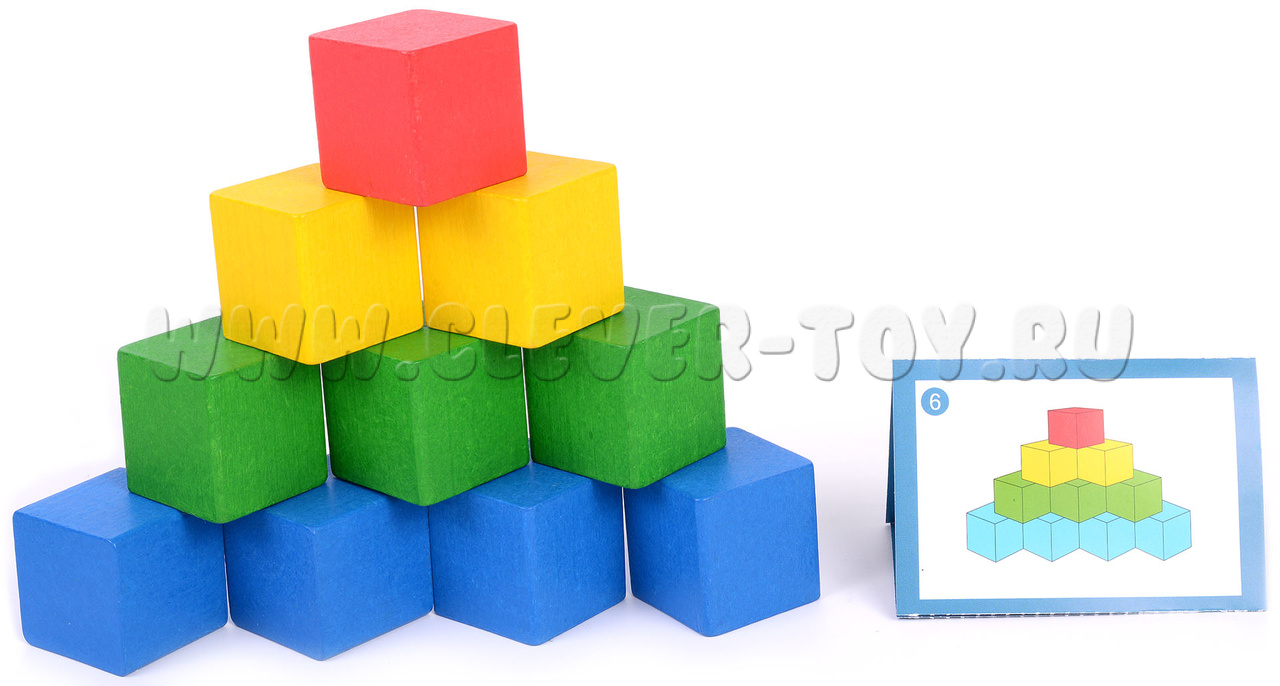 Из деревянных разноцветных кубиков "Мозаика" дети сами смогут придумывать разнообразные фигуры или складывать их по образцам на карточках-заданиях.