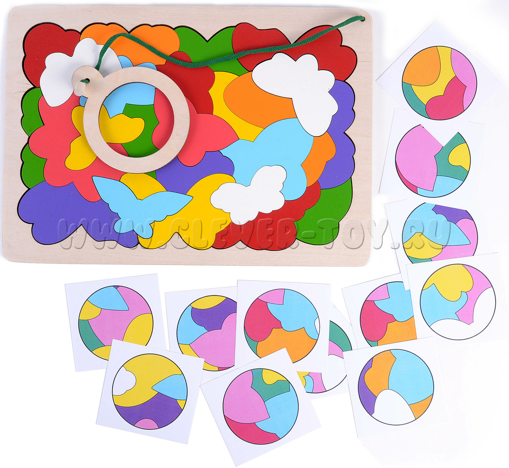• Мозаика - размер 295*258 мм (27 элементов) с деревянной лупой диаметр 85 мм.