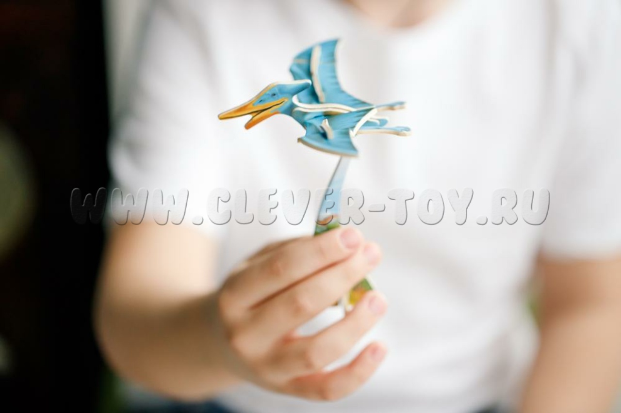 Пазл деревянный 3D. Птерозавр. Серия Мини-животные. Размер 11,5х18,5 см.