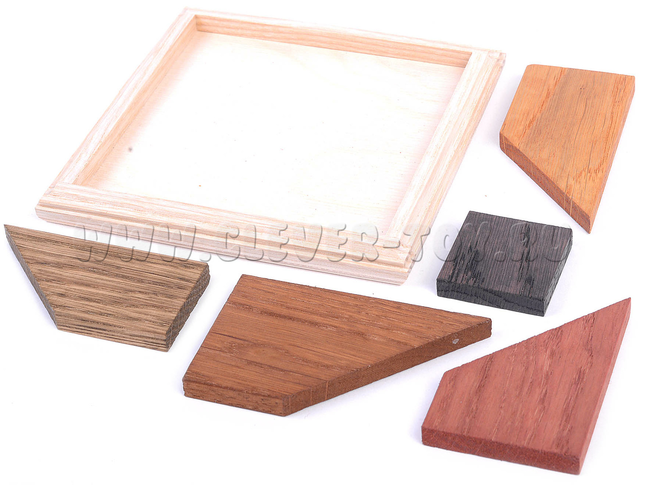 • 4 прямоугольных трапеции из дерева разных оттенков;