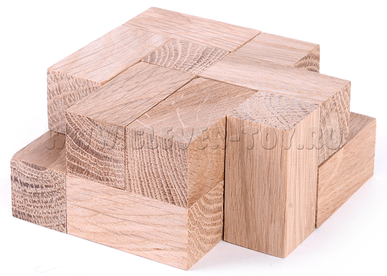Головоломка содержит в себе две задачи. Первая заключается в том, чтобы построить симметричное тело, используя все пять элементов-кубиков. Эта задача имеет много решений и позволяет развивать воображение и творческие способности.