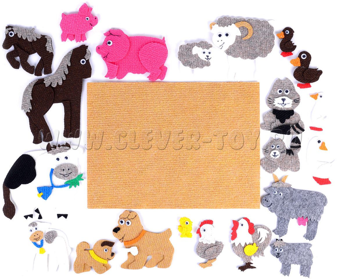 • вместе вы сможете придумать большое количество интересных историй с помощью ярких фигурок животных из ковролина,