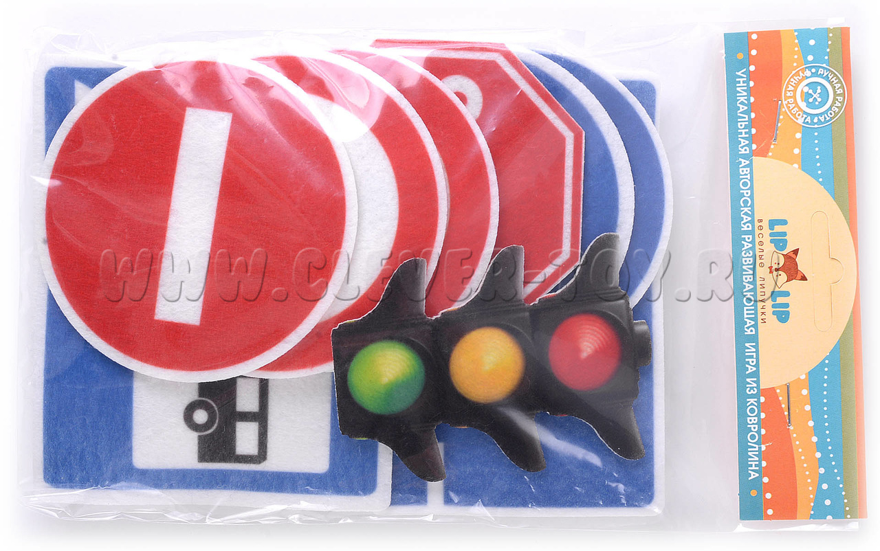 Яркие, мягкие, прочные и долговечные элементы набора «Дорожные знаки» из современного материала – фетра – от ведущего российского производителя игр из фетра и ковролина – компании «LIP-LIP».