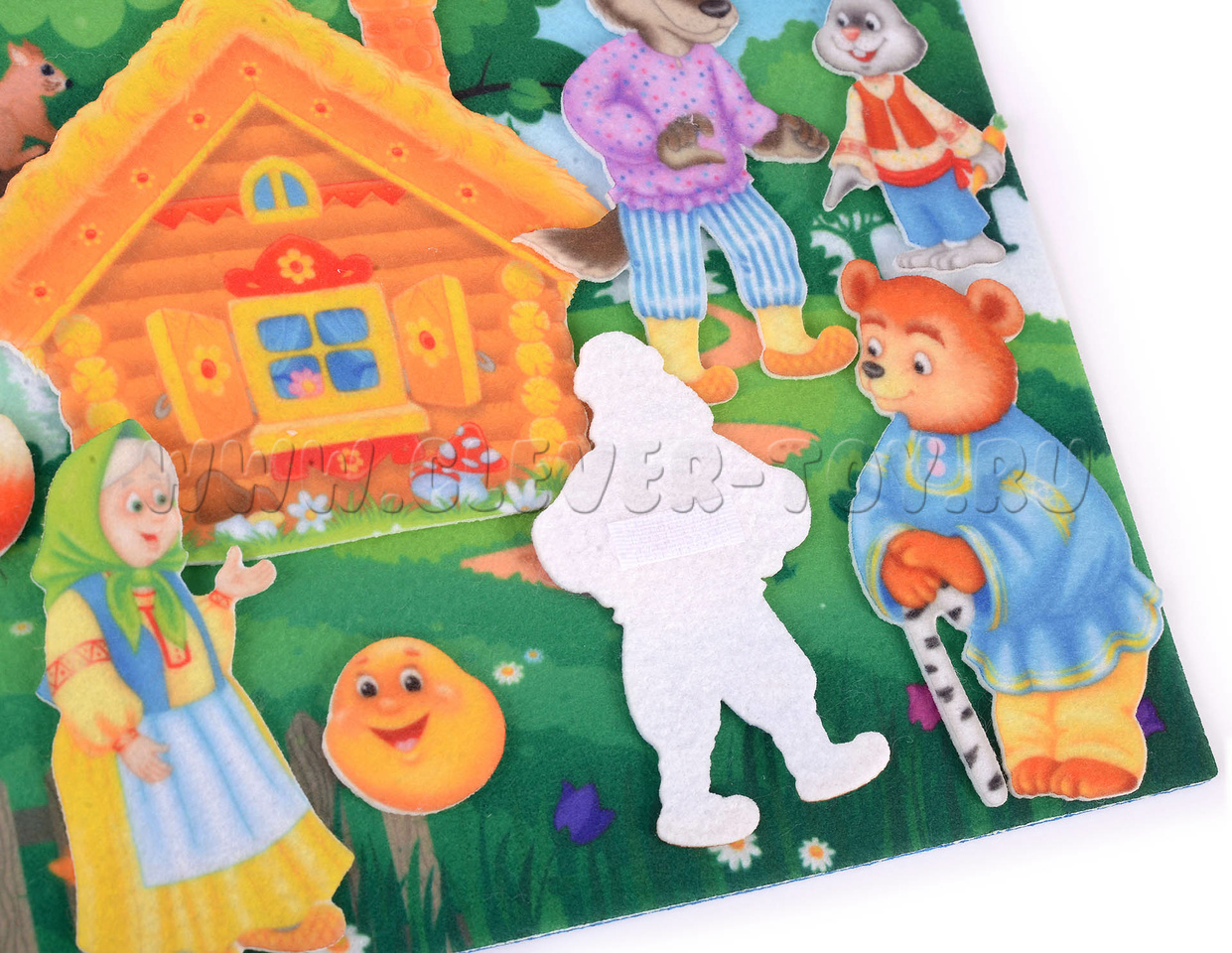 Заниматься можно как в группе, так и индивидуально. Благодаря липучкам ребенок научится считать, рассказывать по картинкам сказку, разовьет память, внимание, логику и речь. Для того что бы детали не терялись, сзади сделан кармашек, в который после игры удобно их прятать. Купить развивающее пособие можно в нашем магазине с доставкой в любой город России!