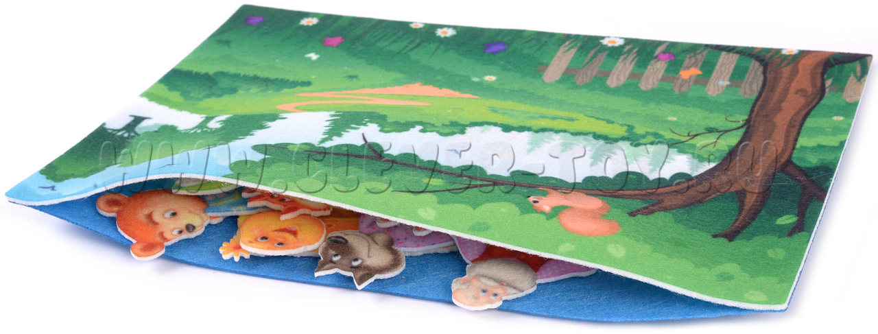 Детское игровое пособие сделано из фетра в виде аппликации и способное увлечь ребенка в мир увлекательной игры. Благодаря конструктору можно разыгрывать спектакли домашнего театра, и проводить множество дидактических игр по подготовке к школе. Материал не сомнется и не порвется во время игры, а многоразовые липучки позволят не ограничиваться в своих фантазиях.