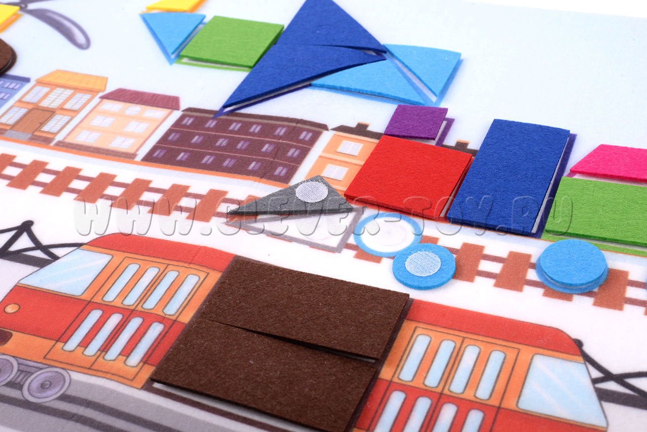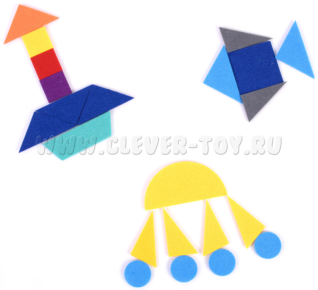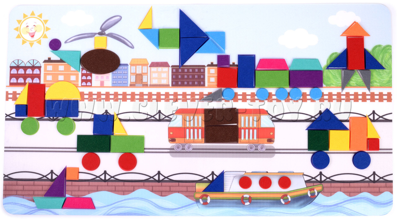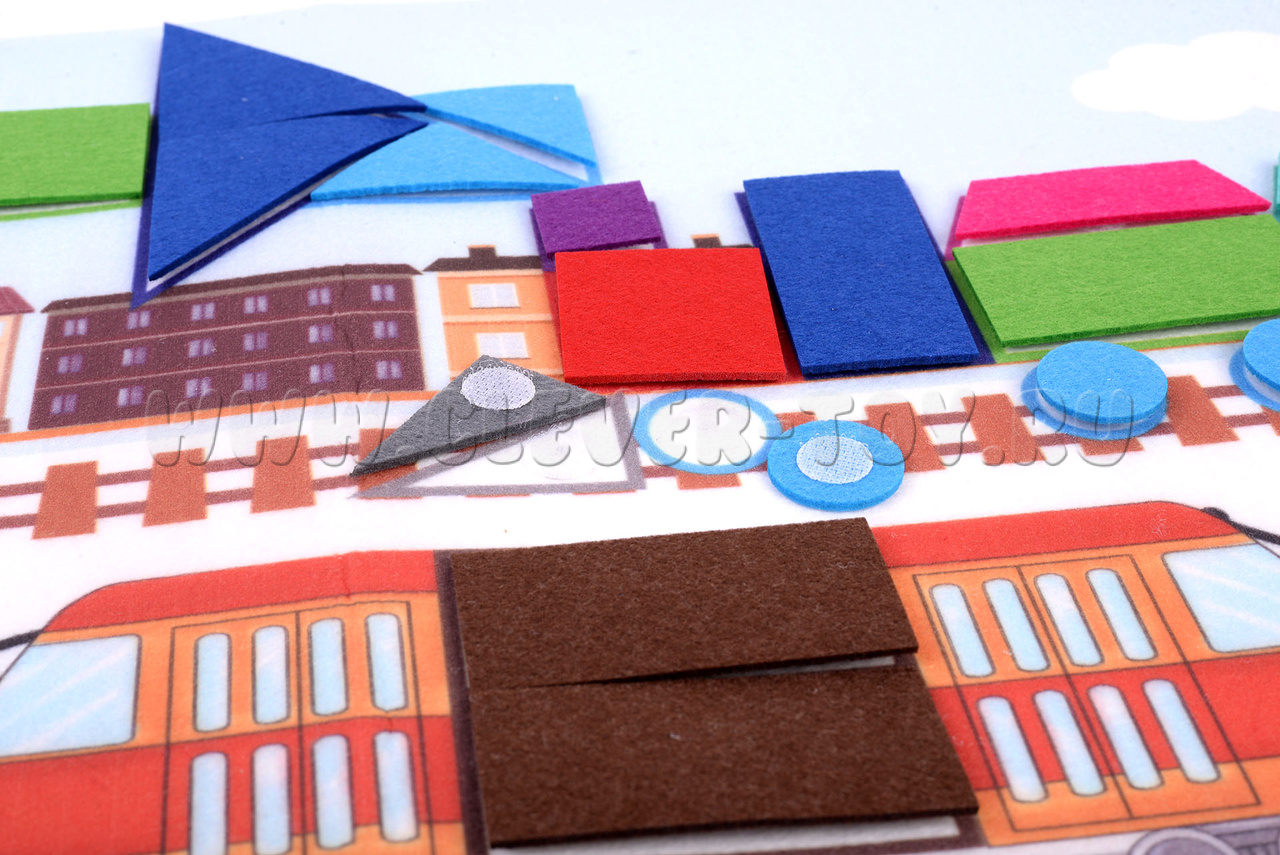 Состав набора: основа из фетра 1шт., геометрические фигуры на липучках  61 шт.