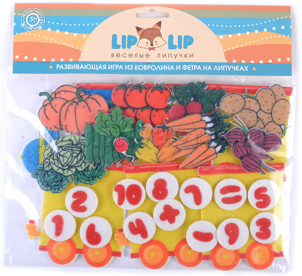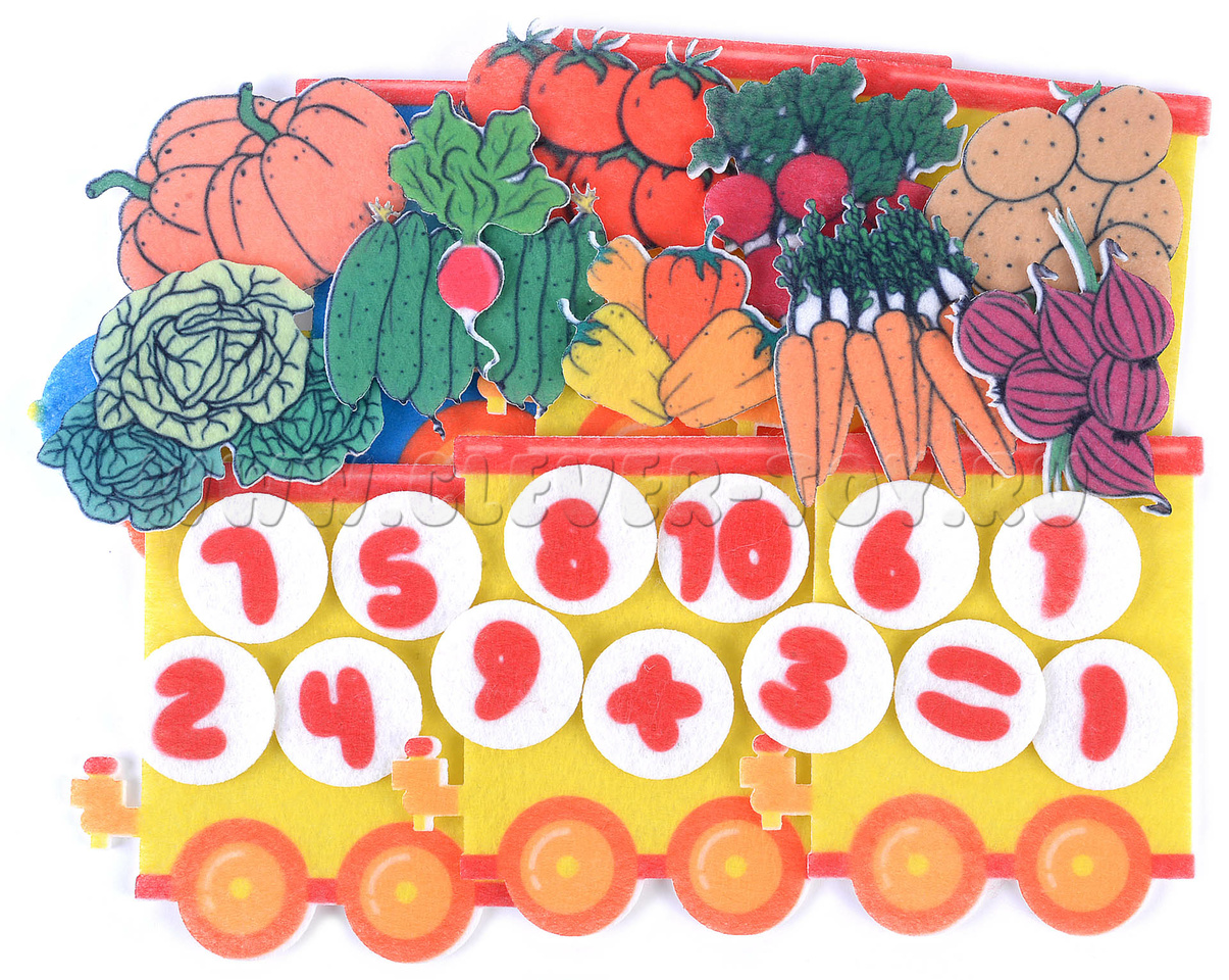 Фетровый конструктор "Паровоз с овощами" уже применяется для обучения дошколят в государственных и частных детсадах России, а также прекрасно зарекомендовал себя для изучения счёта на дому.