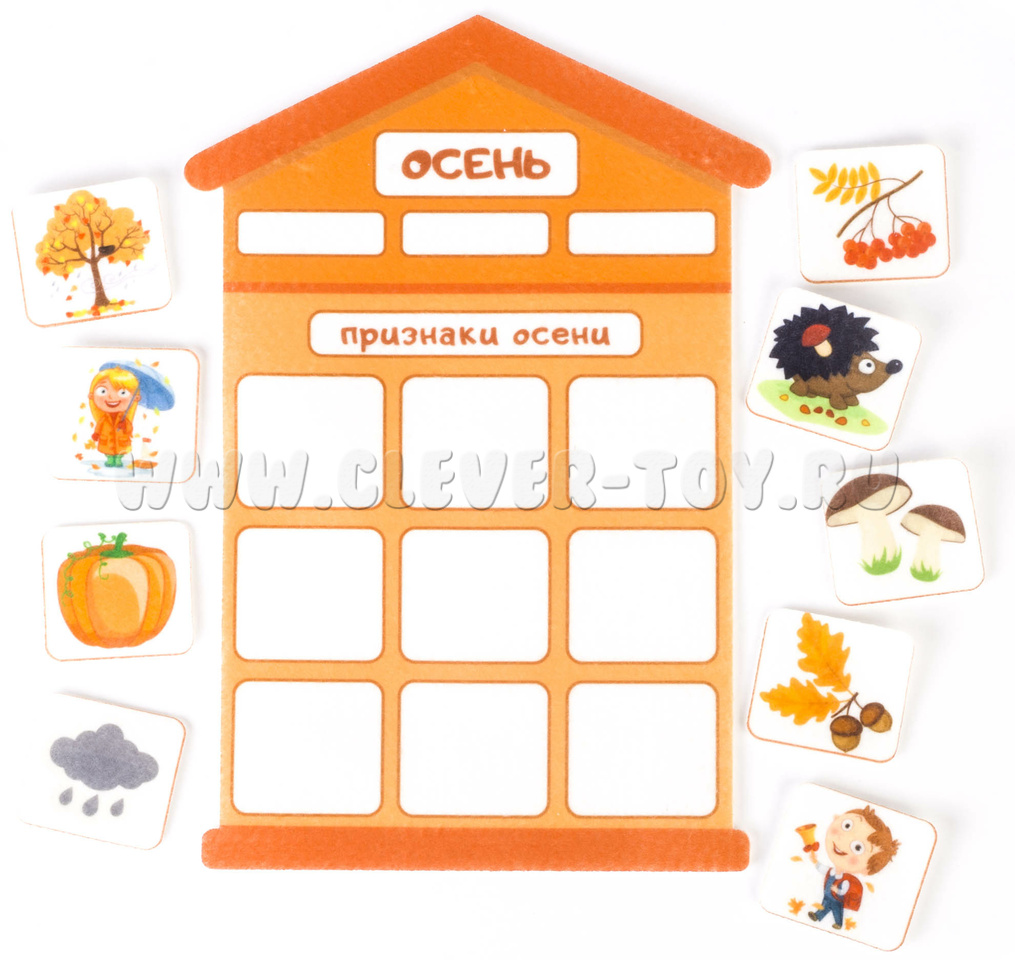 • маленькие фигурки на липучках с изоброжением деревьев, мальчиков, девочек, птиц, ягод, солнца, снежинки и т.д..