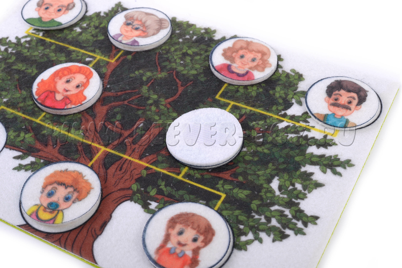 • тематическое игровое поле в виде родового дерева (выполнено в форме конверта, в котором удобно хранить игровые элементы);
