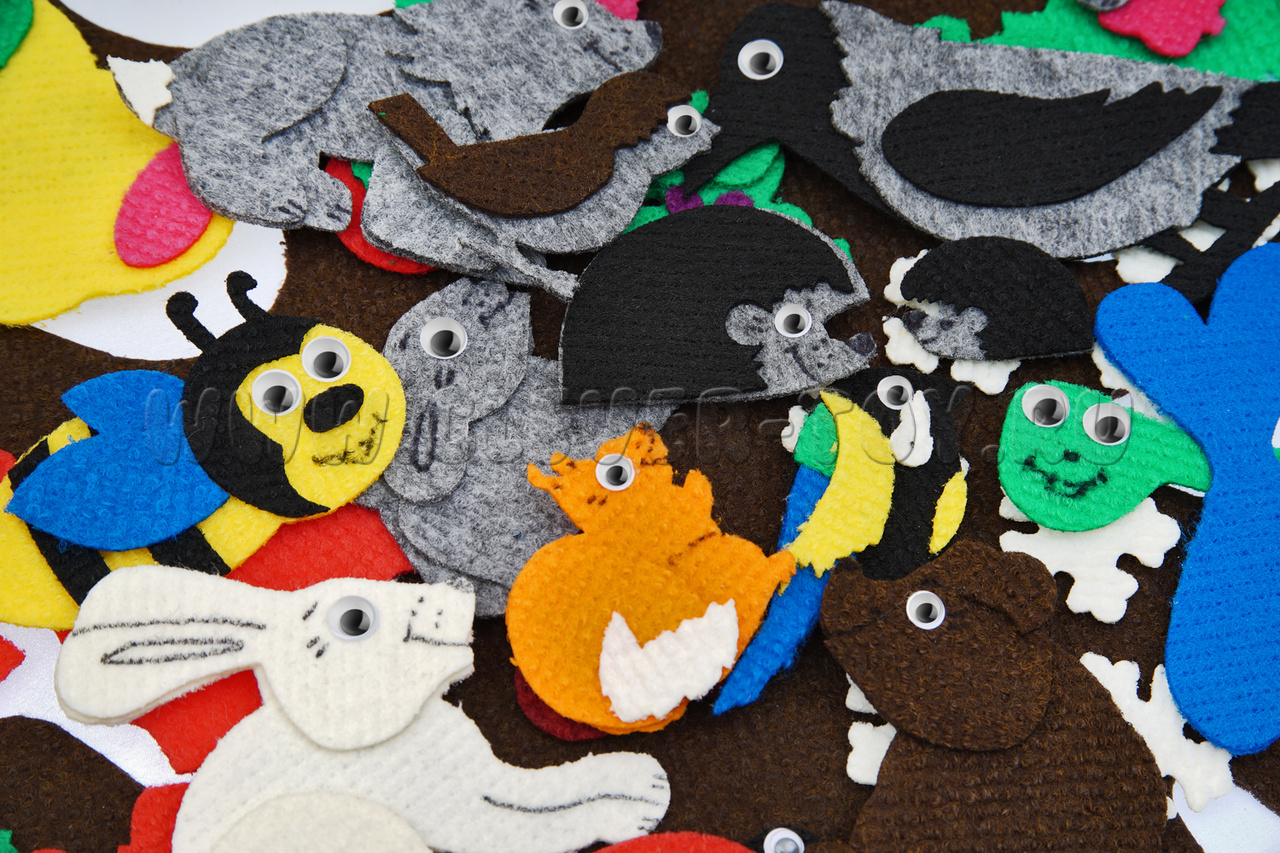 • звери и их детёныши - ёж, ежёнок, волк, волчонок, белка, бельчонок, лягушка, лягушонок, лось, лосёнок, лиса, лисёнок, белый заяц, серый заяц, зайчонок, медведь, медвежонок, медведь в спячке;
