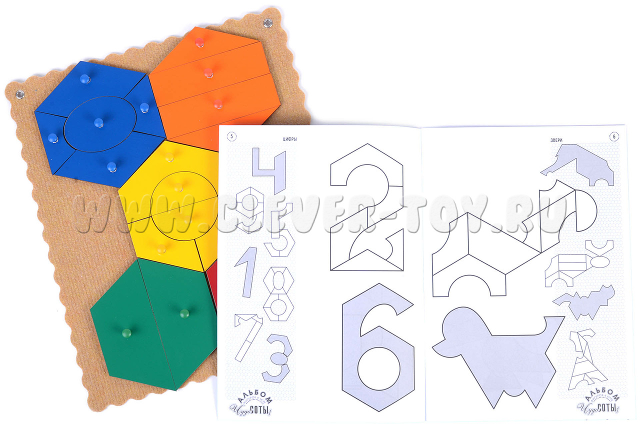 • Соты: целая – красного цвета, из 2-х частей – зелёного, из 4-х частей – оранжевого цвета; из 5-ти частей – жёлтого и синего цвета.