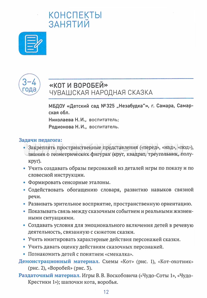 Каждое занятие включает работу с определенной народной сказкой с упором на три ключевых направления детского развития: духовно-нравственное, социально-коммуникативное и познавательное.