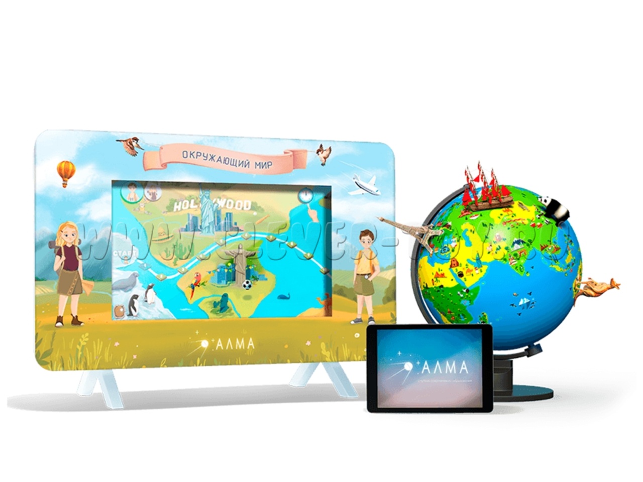 1. Тематическая интерактивная сенсорная панель (25 дюймов), оформленная в стиле открытий и приключений с персонажами из программного обеспечения (Характеристики: Full HD, мультитач 10 касаний, intel, 4 гб RAM, SSD 120 гб, win 10);