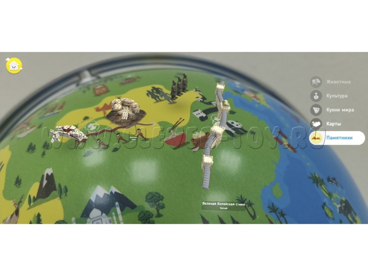 3. Интерактивный глобус - детский глобус с дополненной реальностью. Помогает в развитии лингвистических навыков, развивает любознательность, интерес к изучению окружающего мира. В приложении 6 категорий: культура, животные, изобретения, памятники, карты, кухни мира. В общей сложности 1000 интересных фактов и 400 удивительных событий;