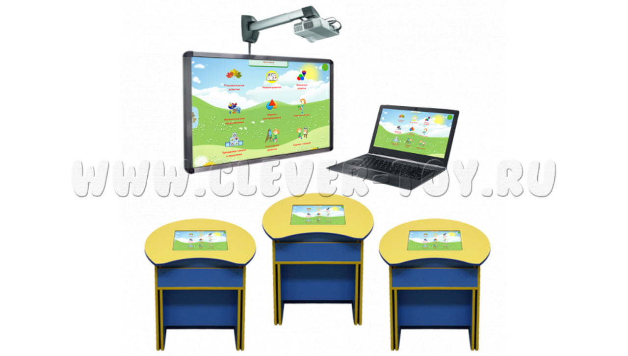 В такой интерактивный класс входит три интерактивные парты, которые подключаются через Wi-Fi к компьютеру или ноутбуку учителя, а также к проектору и к интерактивной доске. Это создает полноценную интерактивную среду, открывающую новые уникальные возможности для проведения уроков!