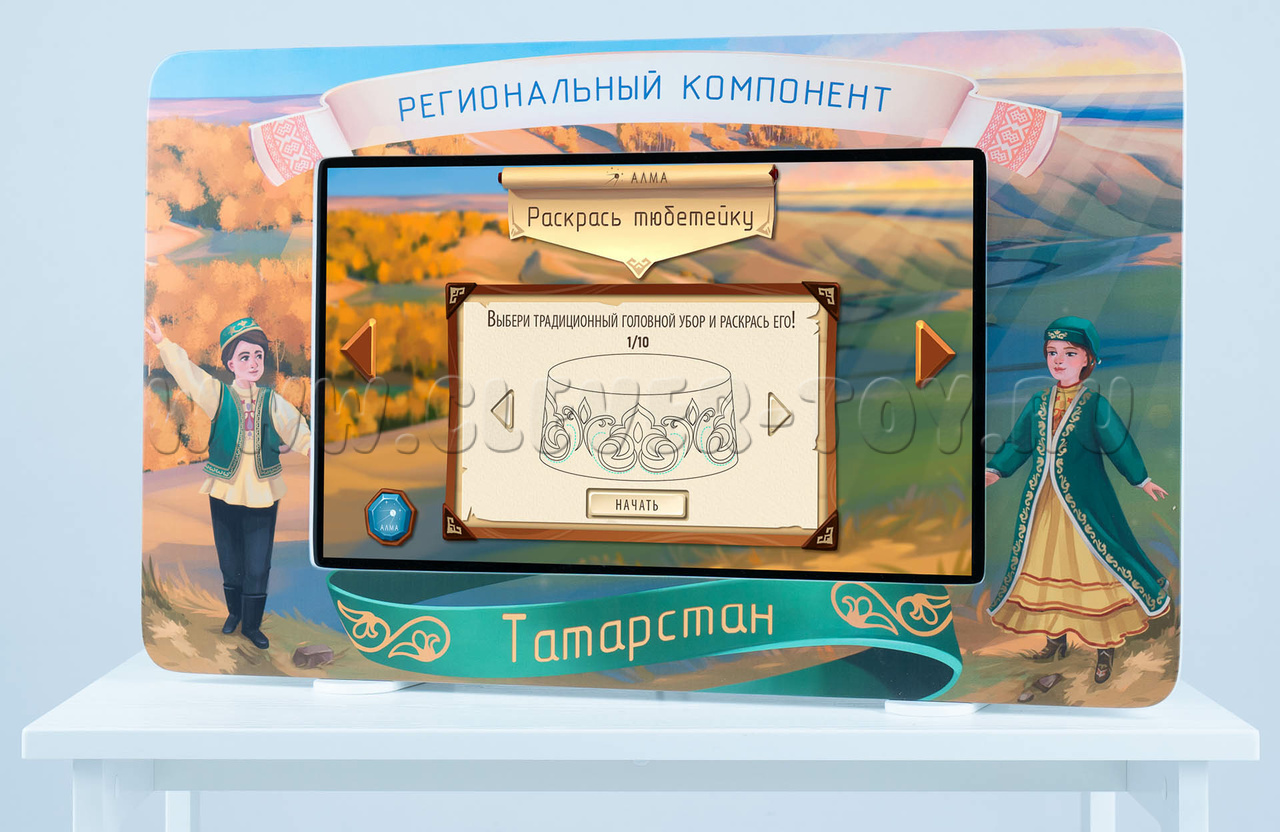 - Программное обеспечение “Региональный компонент: Татарстан” с десятками творческих заданий, нацеленных на обучение в игровой форме,