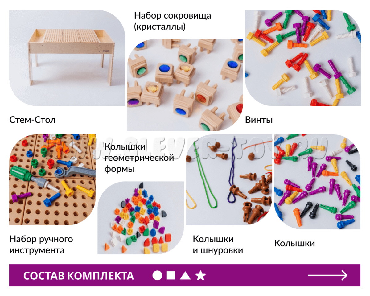 STEAM - стол комплектуется методикой, с достаточным количеством упражнений, охватывающих большое количество образовательных областей.