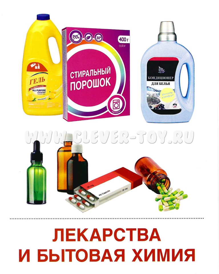 В комплекте представлены следующие предметы: Вентилятор. Вилка. Вязальные спицы. Газовая плита. Гвозди. Иглы. Лекарства и бытовая химия. Молоток. Нож. Ножницы. Свеча. Спички. Топор. Утюг. Шило. Электрический чайник.
