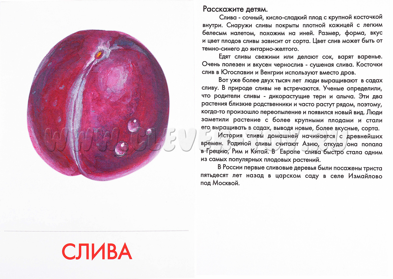 Все картинки на карточках яркие, крупные, детально прорисованные, что делает их наглядными и помогает использовать не только для индивидуальных, но и для групповых занятий. Карточки выполнены из прочного картона, подходят для многократного использования. На одной стороне карточки расположена яркая картинка с изображением и названием фрукта, на обратной стороне – доступная и интересная для ребёнка информация о фруктах (описывает внешний вид фрукта, область произрастания, интересные факты о применении фруктов).