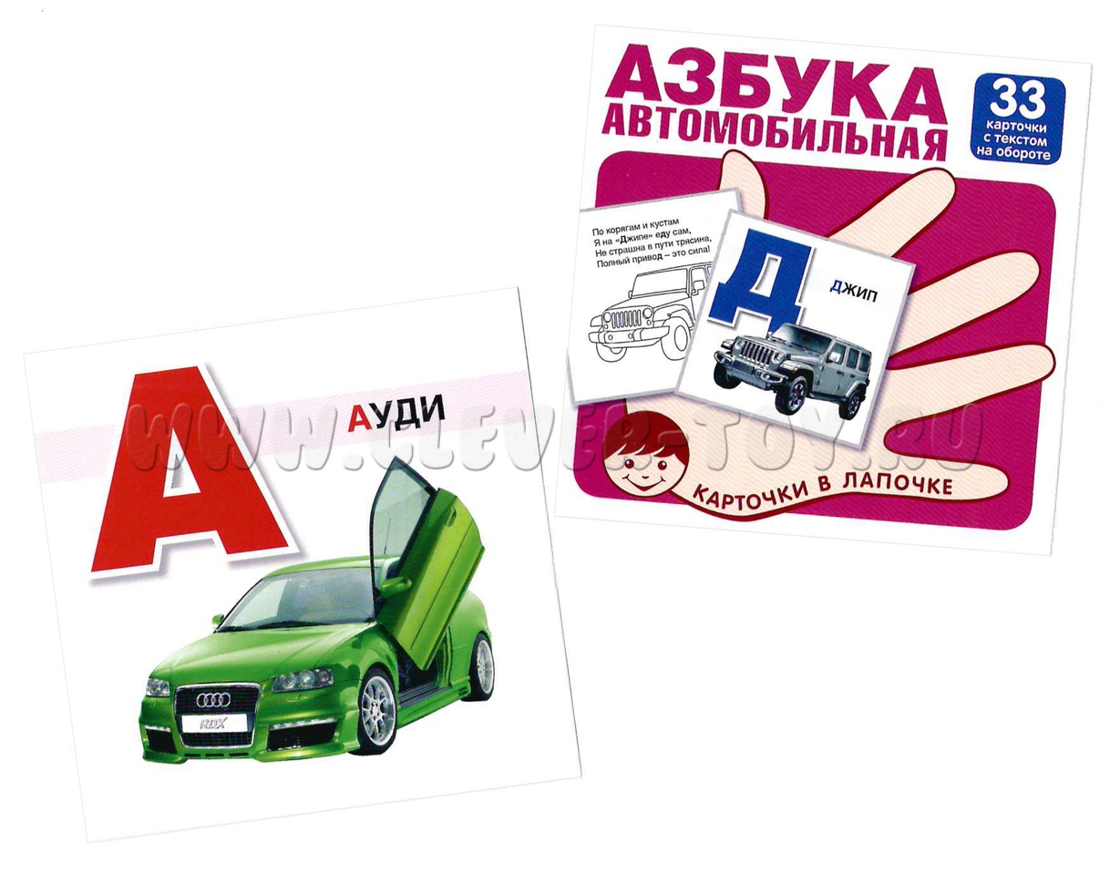Для маленьких поклонников машин есть специальная азбука в серии Карточки в лапочке. Комплект "Автомобильная азбука" поможет детям в интересной форме ознакомиться с гласными и согласными буквами родного языка.