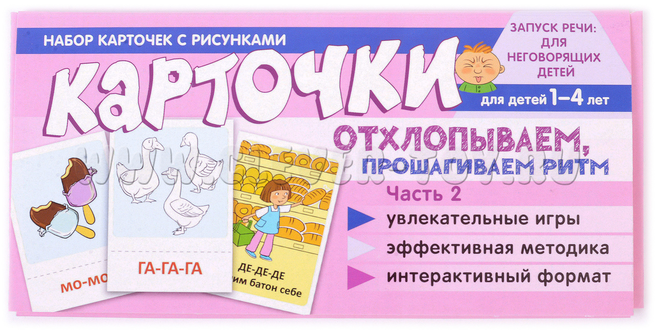 Набор "Отхлопываем, прошагиваем ритм. Часть 2" - это 12 листов, на которых собраны 60 карточек и 4 увлекательные игры. Он предназначен для детей от 1 года до 4 лет.