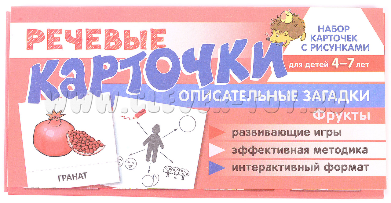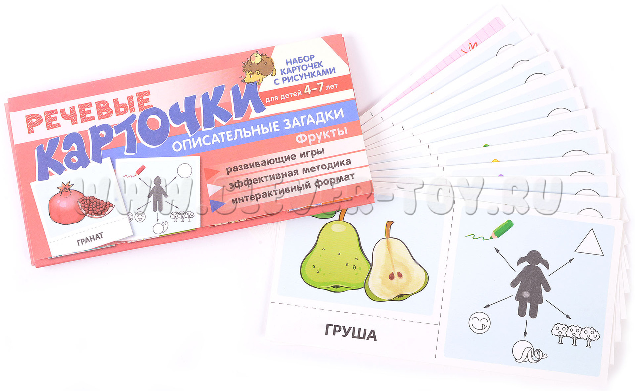 Набор карточек с рисунками. Речевые карточки. Описательные загадки. Фрукты.