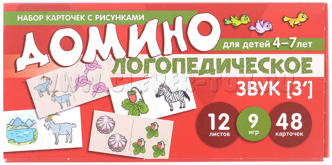 "Логопедическое домино" - это учебно-игровой комплект, состоящий из 12 обучающих карточек с 48 парами цветных картинок. В процессе игры ребёнок научится правильно произносить звук [з’], а также образовывать форму множественного числа существительных и согласовывать их с числительными и прилагательными.