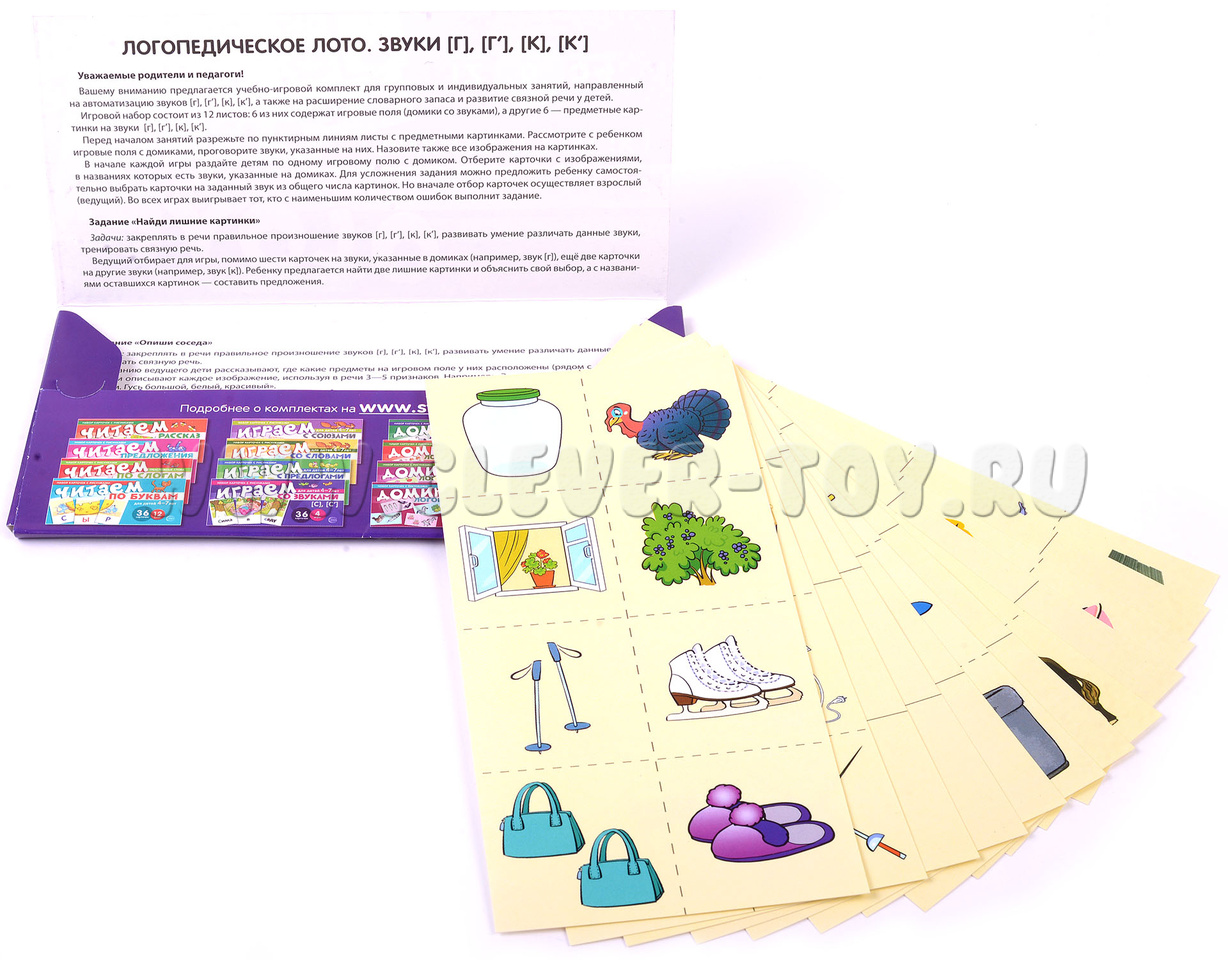 Набор карточек с рисунками. Логопедическое лото. Учим звуки [Г], [Г’], [К], [К’]