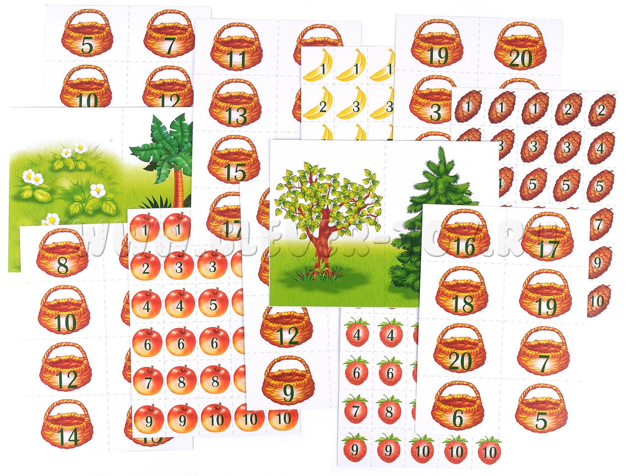 - Раздайте детям корзинки и предложите положить в них по два или три предмета так, чтобы в сумме числа на предметах соответствовали числу на корзинке.