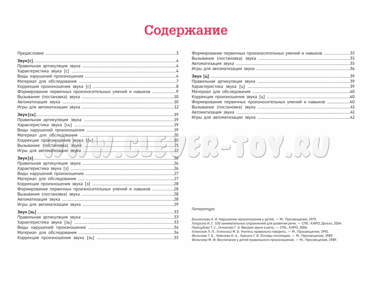 Так же приводится речевой и наглядный материал для проведения обследования состояния звукопроизношения, поэтапная коррекция нарушений произношения данной группы звуков.