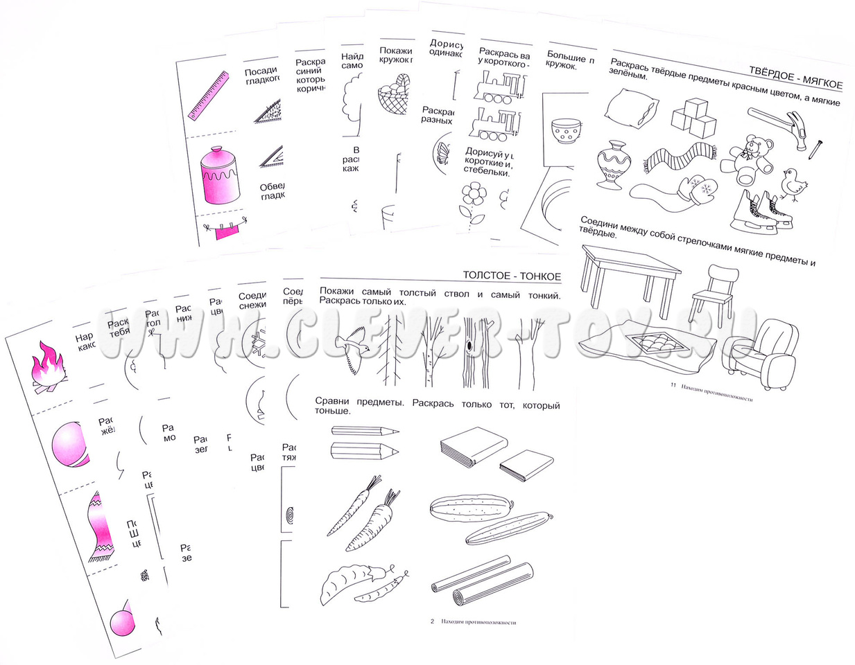 Предложите ребенку разложить карточки по парам, и найти противоположности.