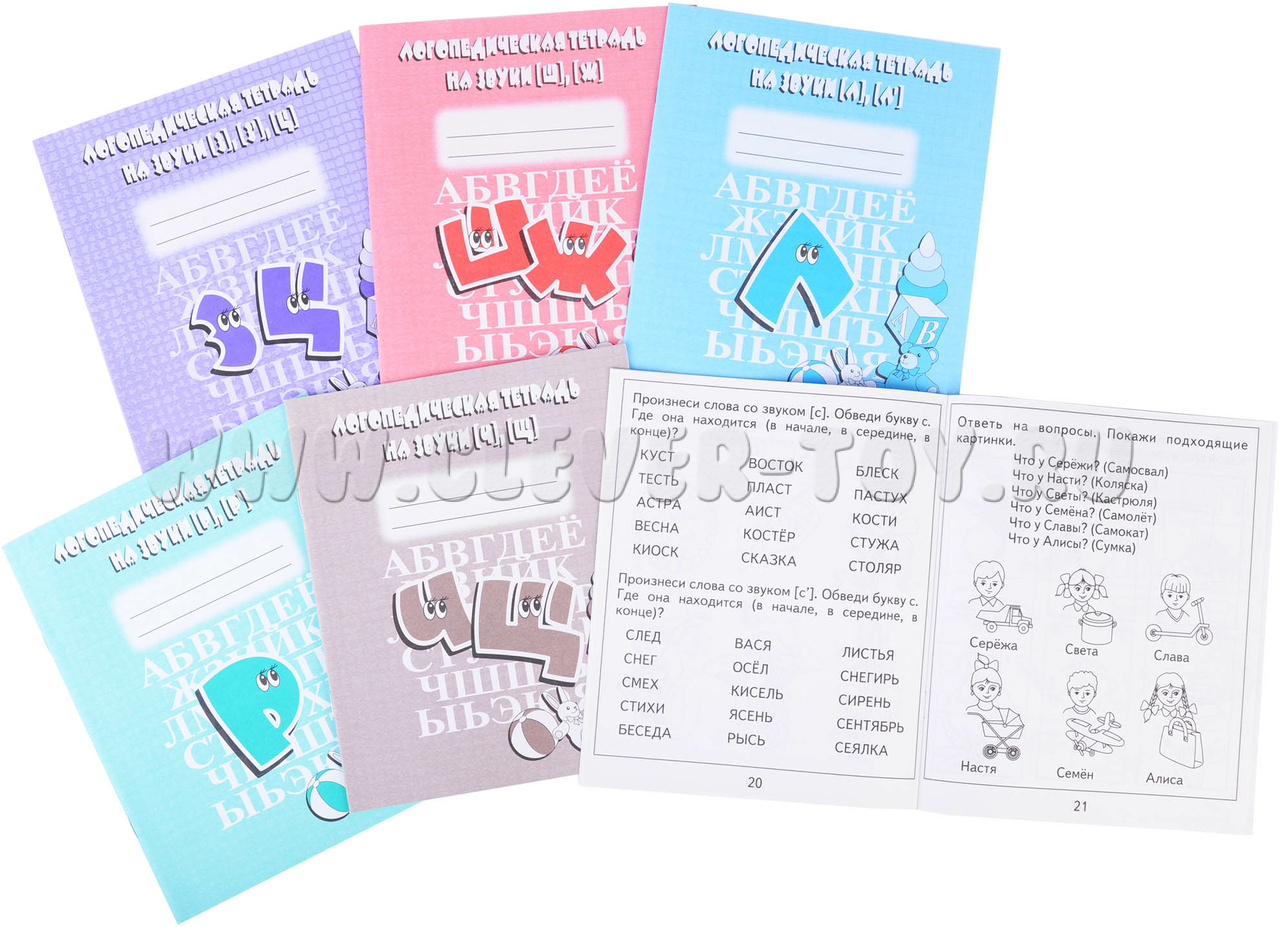 Каждая тетрадь “Логопедического набора” подразумевает тренажер по определенному звуку: