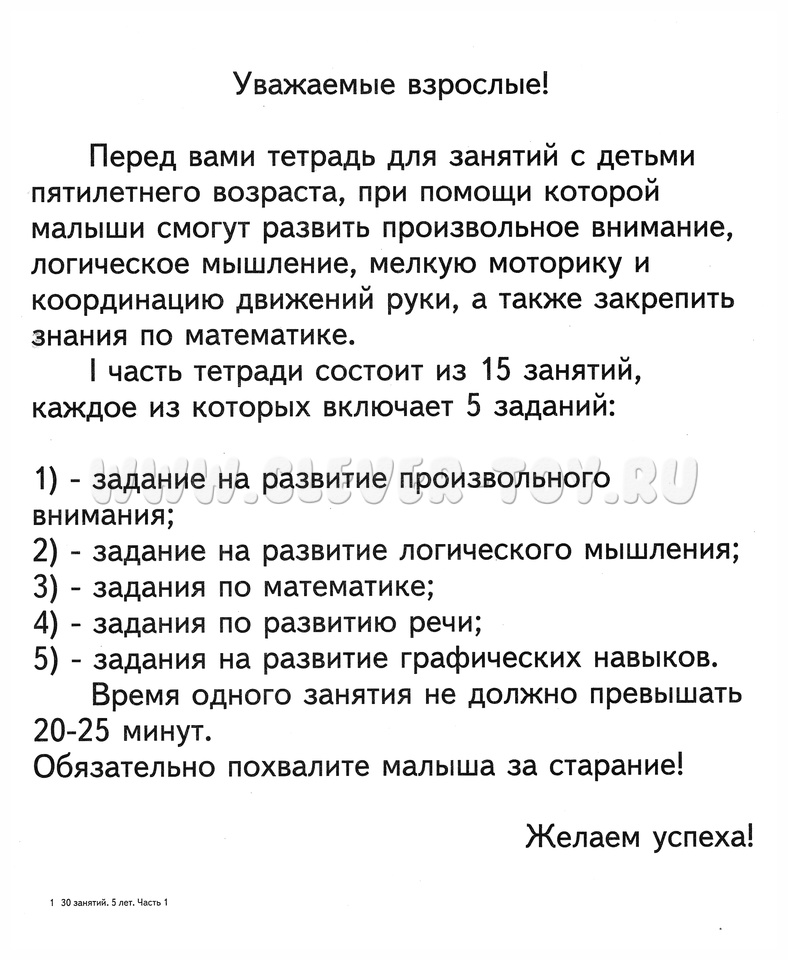 Рабочая тетрадь 30 занятий для 5-и лет ч.1