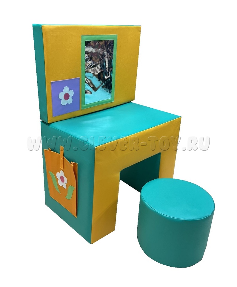 Комплектация: стол: 60*40*60 – 1шт. зеркало: 60*10*40 – 1 шт. пуф: 30*25 – 1 шт. жилет - 1 шт. накидка - 1 шт.