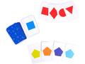В набор входит инструкция с правилами игры и 32 карточки с изображениями 8 геометрических фигур разных цветов.
