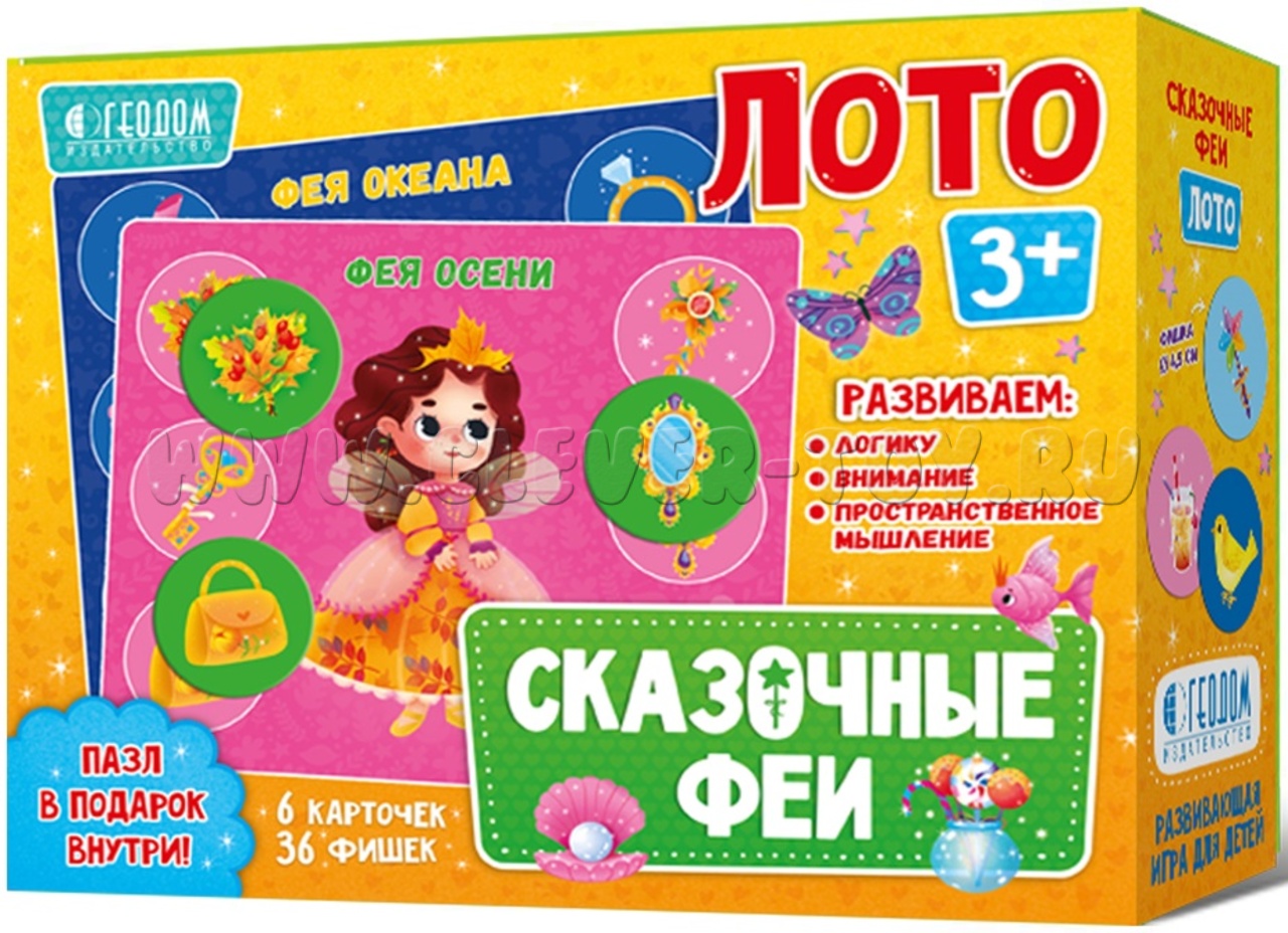Лото. Сказочные феи. 6 карточек 36 фишек.