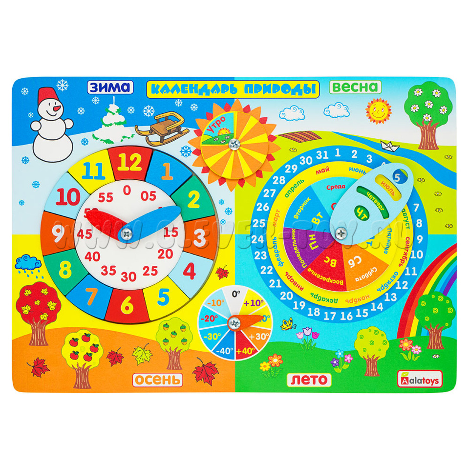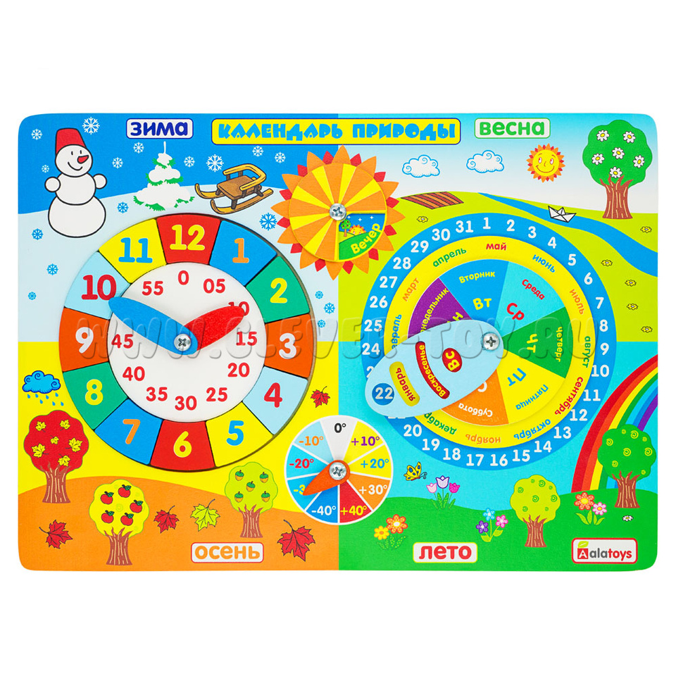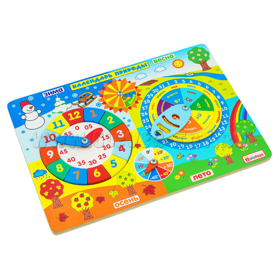 Бизиборд "Календарь природы" развивает навыки речи, пространственное мышление, логику и творчество. а яркое оформление дает простор для фантазии.