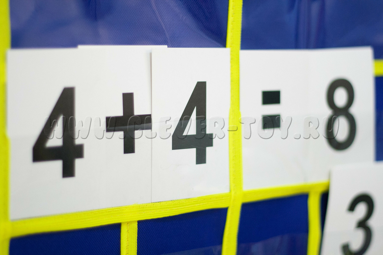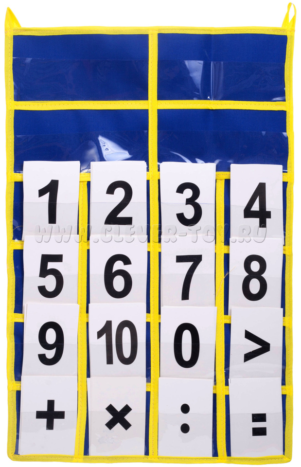 16 прозрачных кармашков (ширина 8 см) для цифр и знаков,
