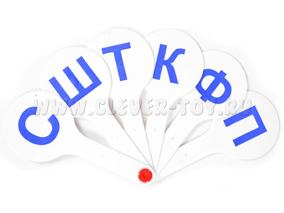 Всего на веер 10 движущихся элементов. На каждом элементу нанесена согласная буквы крупным печатным шрифтом.