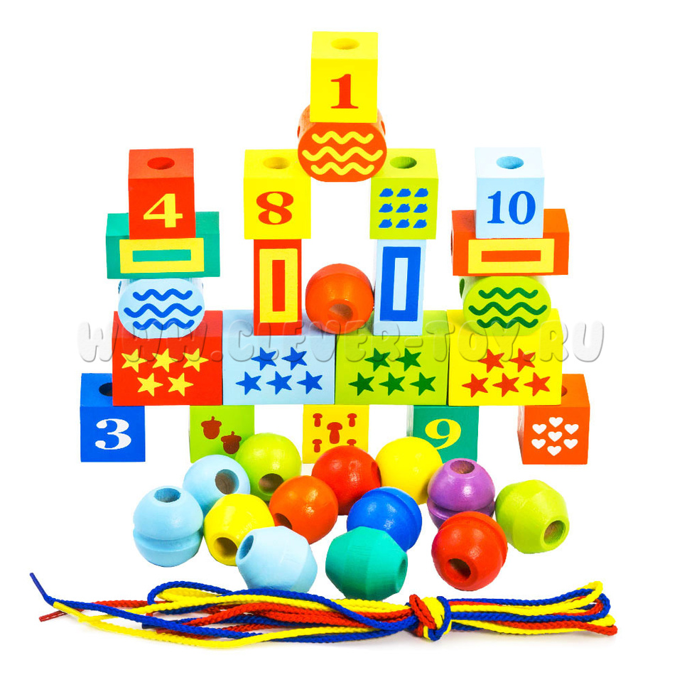 Конструктор "Шнуровочка" (35 деталей, 3 шнура, деревянная коробка)