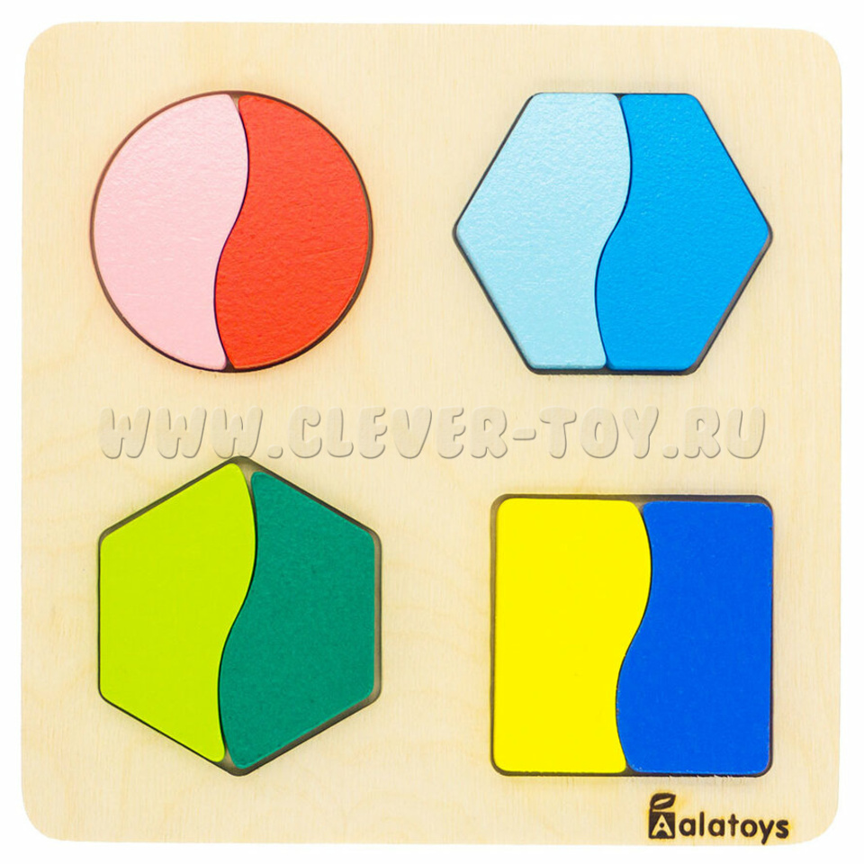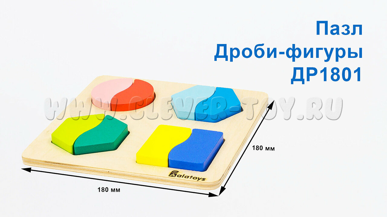 Пазл "Дроби" знакомит ребёнка с понятиями "целое" и "части целого", развивает логику и внимание. Все формы поделены пополам.