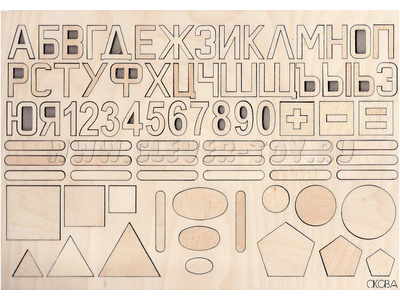 Игровой материал знакомит детей с геометрическими фигурами, буквами и их последовательностью - алфавитом.