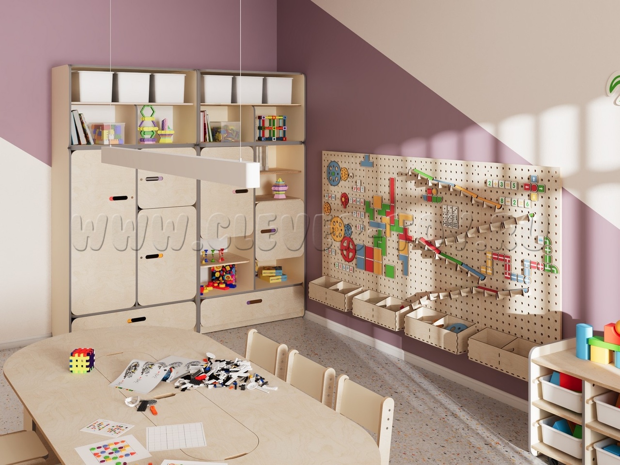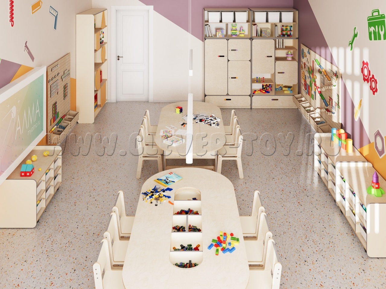 • Единое стильное оформление. Мебель и декоративные элементы выполнены в едином визуальном стиле. Это создает организованную, приятную и мотивирующую среду для обучения и творчества.