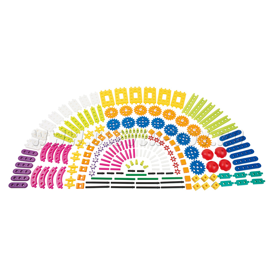 • Многообразие вариантов: В набор входят шестеренки разного диаметра и количества зубьев, что дает возможность создавать разнообразные механизмы.