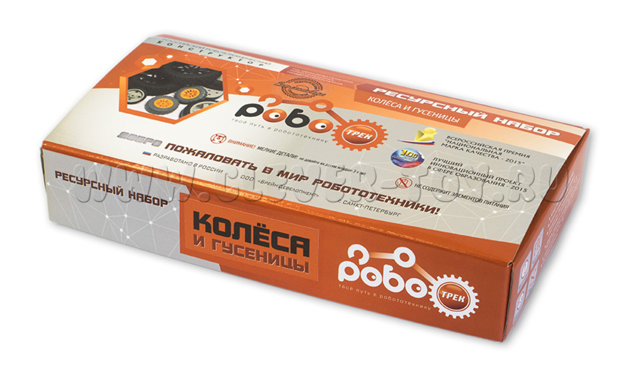 Большой набор, состоящий из колес и звеньев гусеницы, которые позволяют расширить возможности конструкторов линейки Роботрек. Можно создать роботов имеющих разное число колес. Такого рода решения могут упростить конструкцию, а также придать проекту возможность участвовать в соревнованиях, где четырехколесная конструкция оказывается неработоспособна.
