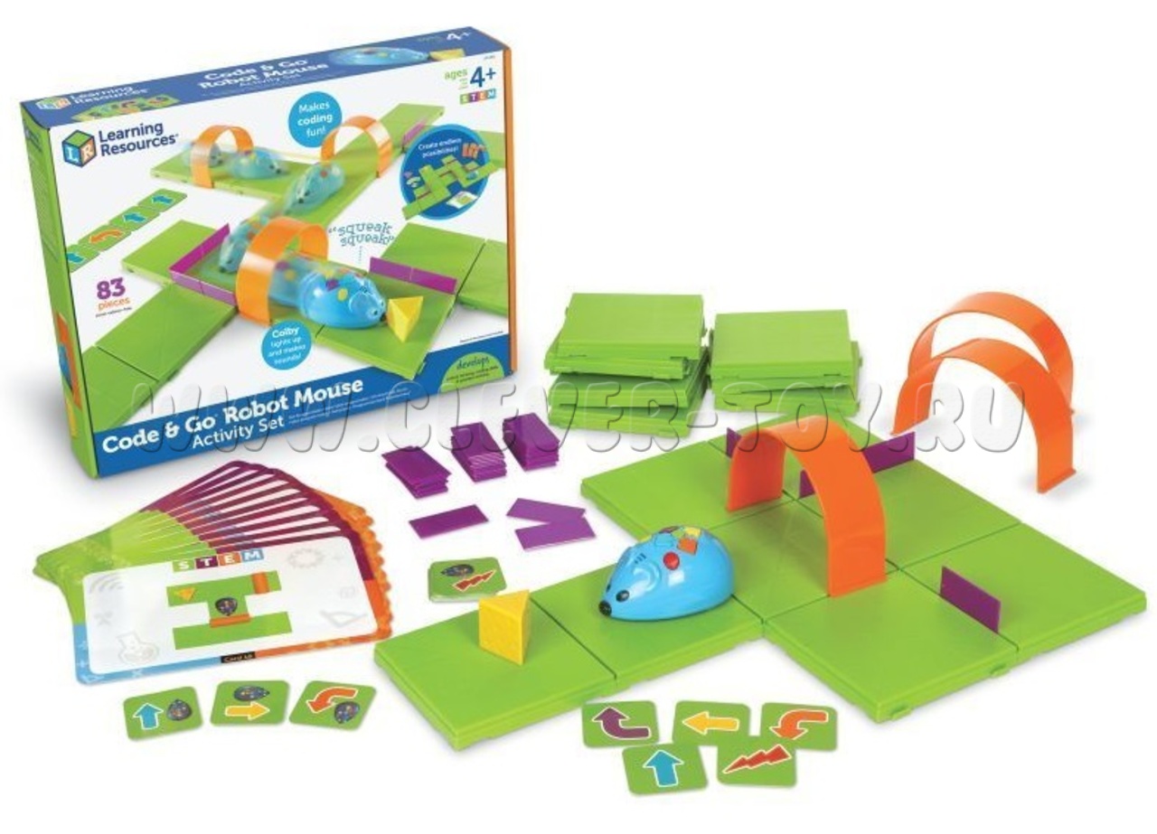 • Робомышь размером 10 см, на корпусе 7 кнопок для программирования, требует 3 батарейки ААА (не включены в комплект).