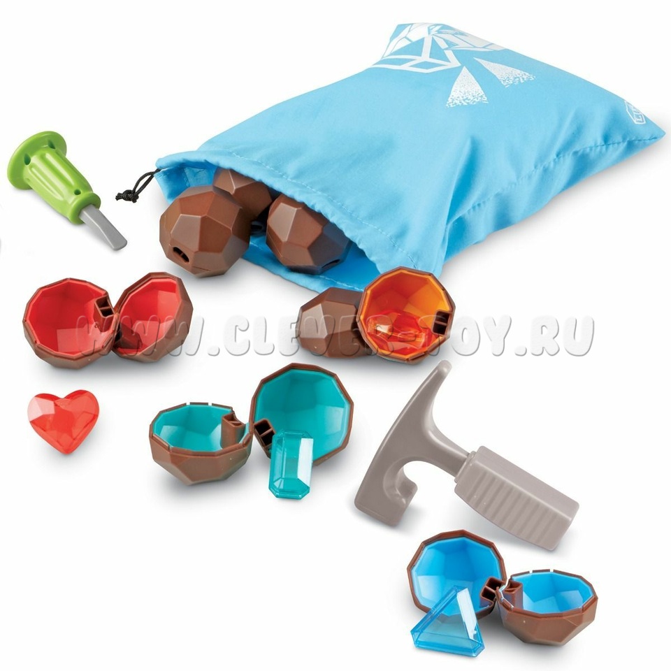 Элементы набора – инструменты геолога и добываемые им драгоценные камни (в которые можно заглянуть внутрь) из прочного, мягкого пластика. Идеально подходят для творческих игр.